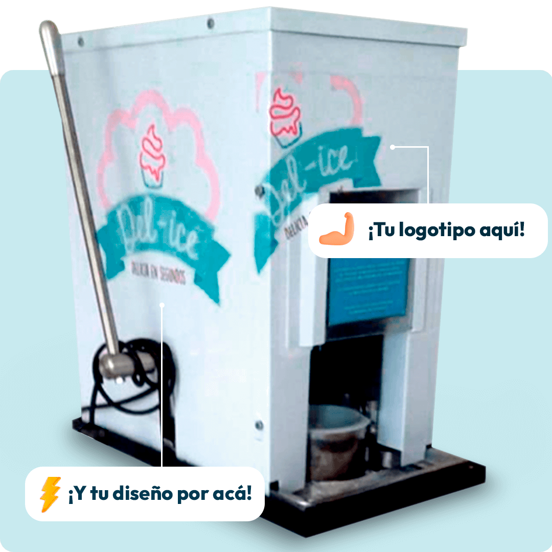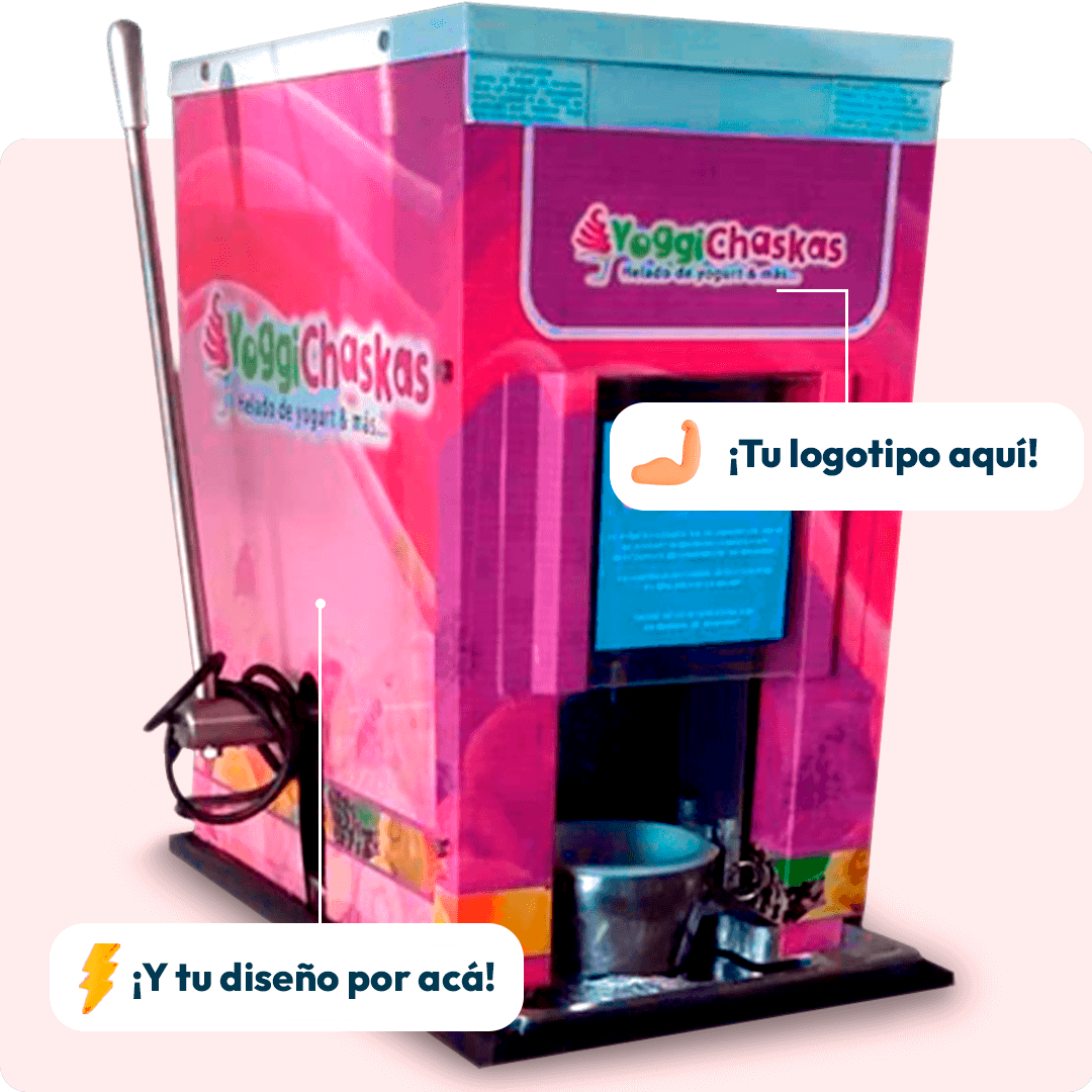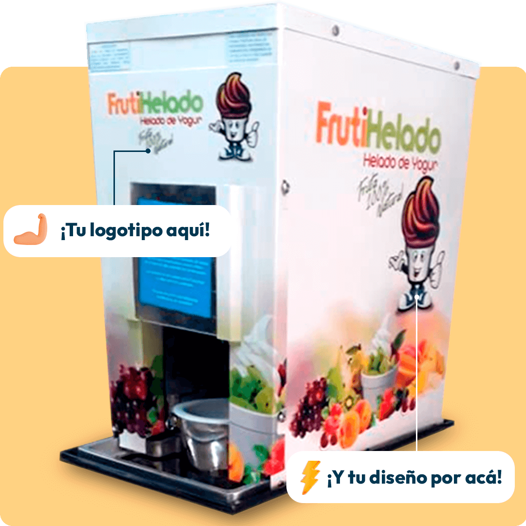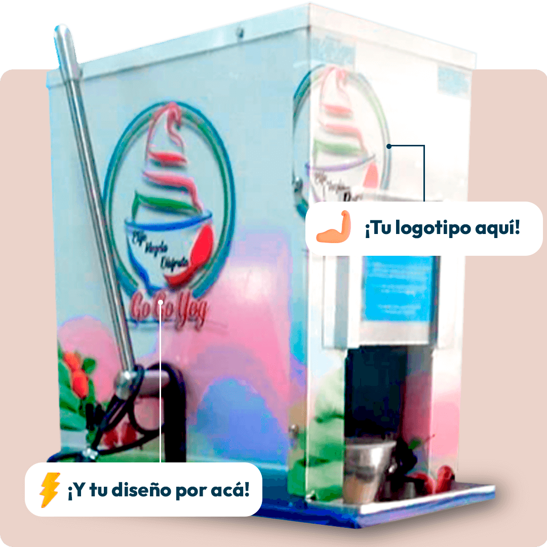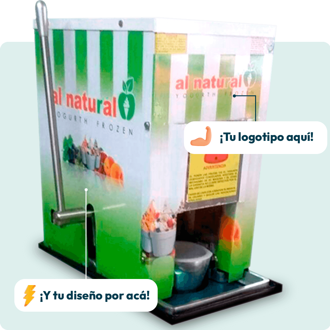¿Te gustaría que tu negocio se destaque entre la competencia? Con Máquina Chascafrutas, personalizamos tu equipo sin costo adicional, agregando el logo y el nombre de tu marca para que refleje la identidad de tu empresa.